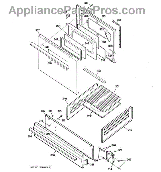 The Broiler Pan Kit is an OEM part for GE ranges. It serves as a secure platform for positioning meats, vegetables, and various foods directly beneath the broiler element, ensuring safe and efficient cooking. The pan is about 17 inches wide by 13 inches deep. Over time, wear and tear can affect broiler pans, causing issues such as flaking or stripping of the non-stick coating and the development of small ridges or holes that permit grease to drip down. Symptoms of bad broiler pans include:
