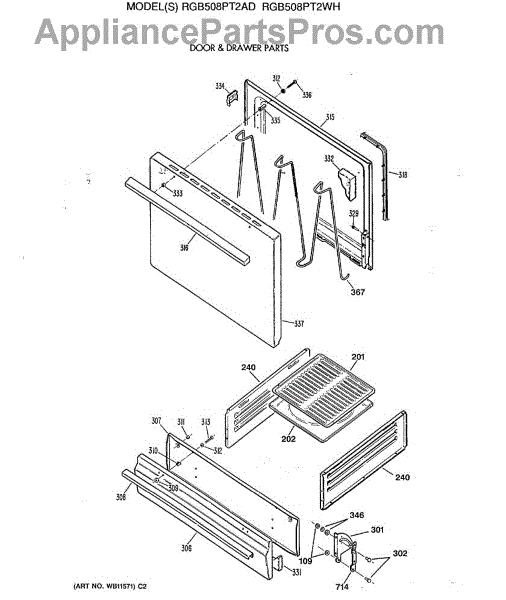 Parts for Ge RGB508PT2WH: 04 - Door & Drawer Parts
