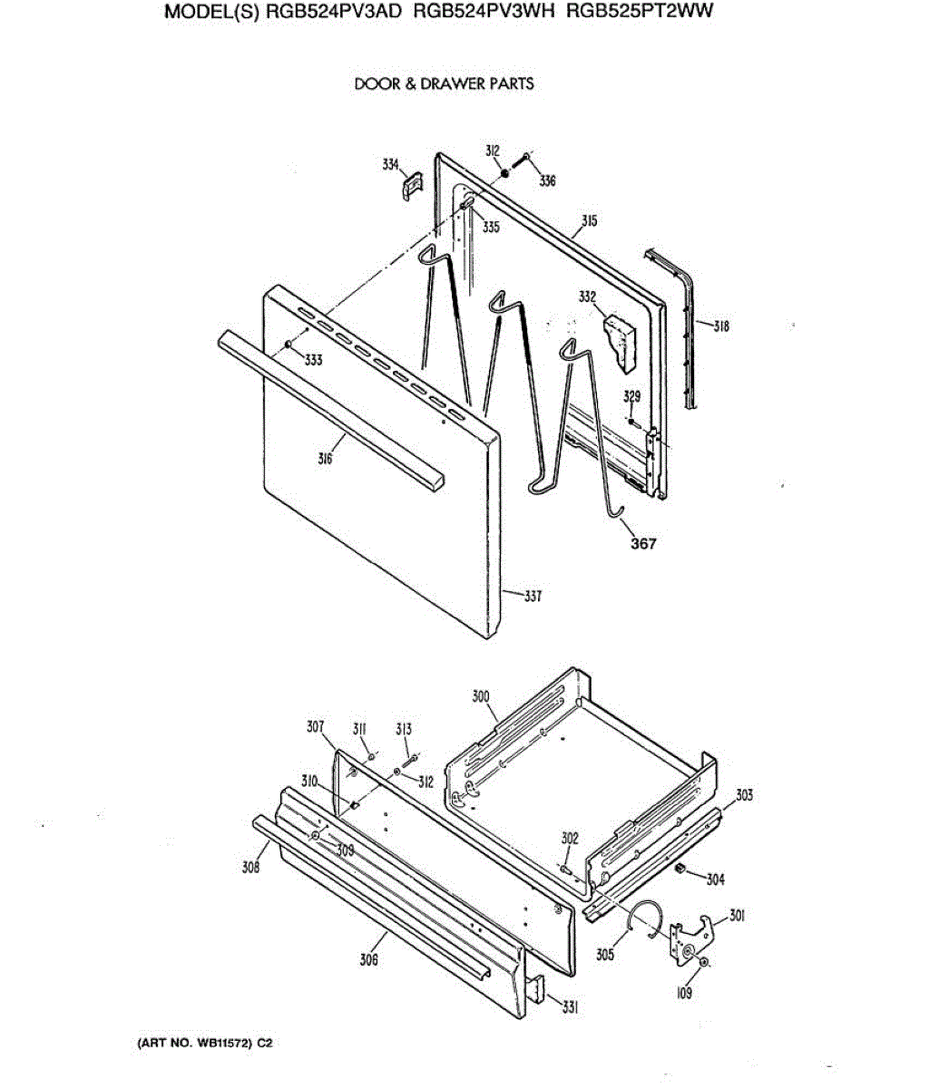 Parts for Ge RGB524PV3AD: 04 - Door & Drawer Parts