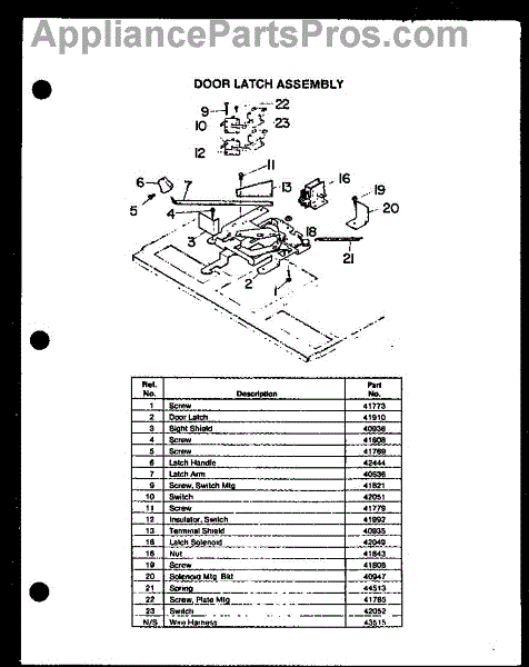 Parts for Amana ESS306-2D / ESS30602D: 04 - Door Latch Assy Parts