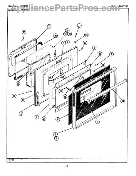 This factory screw secures appliance components to their mounting points. Replace missing, worn, or stripped hardware to restore a tight fit, proper alignment, and quieter operation across the affected assembly.