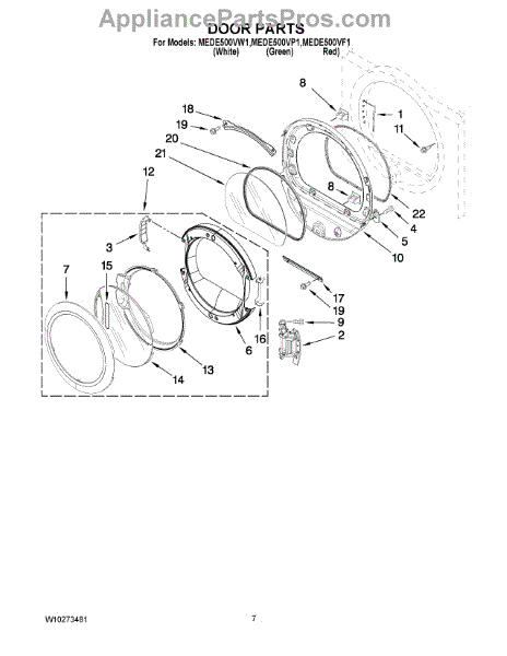 Parts for Maytag MEDE500VP1: 04 - Door Parts