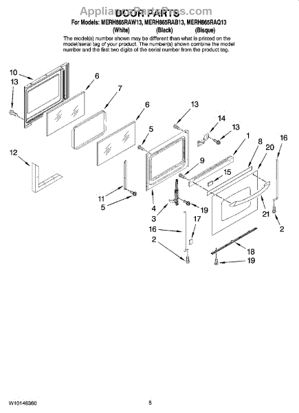 The Oven Door Hinge is an OEM replacement part for Whirlpool ovens and ranges. It is the mechanism that allows the oven door to securely and safely open and close. The hinge components work together to provide an even and balanced movement, while also carrying the weight of the door during operation. Causes of a bad oven door hinge can include regular wear and tear from frequent use, physical damage due to accidental impacts, or rust and corrosion over time. Symptoms of a bad oven door hinge include: