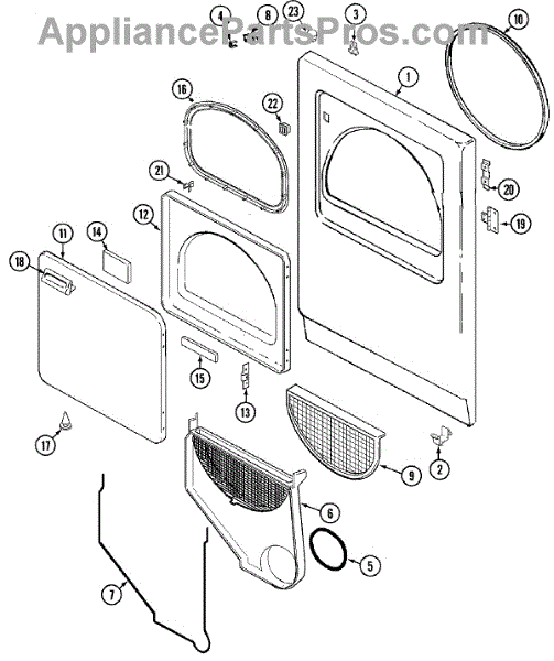 The Door Catch Kit is an OEM part for Whirlpool dryers. It includes the door catch and the necessary mounting hardware to secure it in place. This kit ensures the dryer door remains securely closed during operation, preventing heat loss and ensuring the appliance functions efficiently.