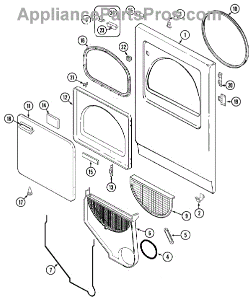 The Door Catch Kit is an OEM part for Whirlpool dryers. It includes the door catch and the necessary mounting hardware to secure it in place. This kit ensures the dryer door remains securely closed during operation, preventing heat loss and ensuring the appliance functions efficiently.
