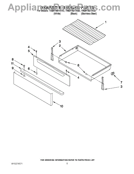 Parts for Maytag YMER7651WW0: 04 - Drawer & Broiler Parts