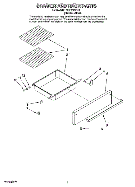 This drawer roller supports and guides the lower range drawer so it slides smoothly on its track. Replacing a worn or broken roller restores easy operation and helps prevent the drawer from binding, sagging, or coming off the track.