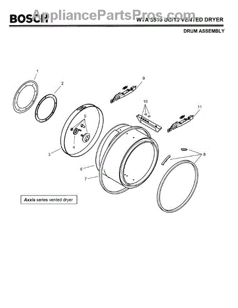 This bearing set replaces worn drum bearings to restore smooth, quiet rotation and help prevent further damage to the tub assembly. Fits select Bosch WTA/WTL laundry machines. What it does