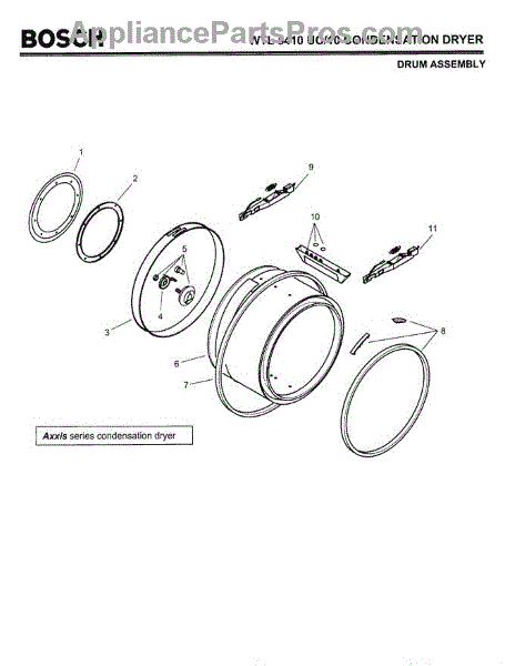 This bearing set replaces worn drum bearings to restore smooth, quiet rotation and help prevent further damage to the tub assembly. Fits select Bosch WTA/WTL laundry machines. What it does
