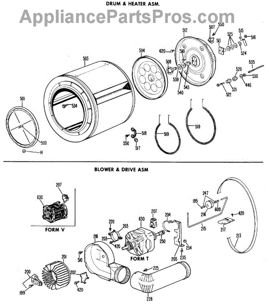 Parts for Ge DLB1550BCL: 04 - Drum & Heater Asm. Parts