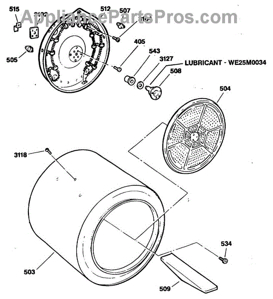 The Bearing Retainer is an OEM replacement part for GE electric dryers. It is an internal component that securely holds the drum bearing assembly in place to enable smooth rotation and provides structural bracing for the bearing during tumbling cycles.