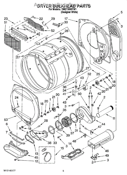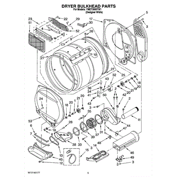 This front drum bulkhead is the stationary front panel that supports the dryer drum and seals the drum opening to maintain proper airflow and drum alignment for reliable drying performance. What it does: