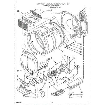 This front drum bulkhead is the stationary front panel that supports the dryer drum and seals the drum opening to maintain proper airflow and drum alignment for reliable drying performance. What it does: