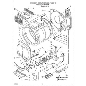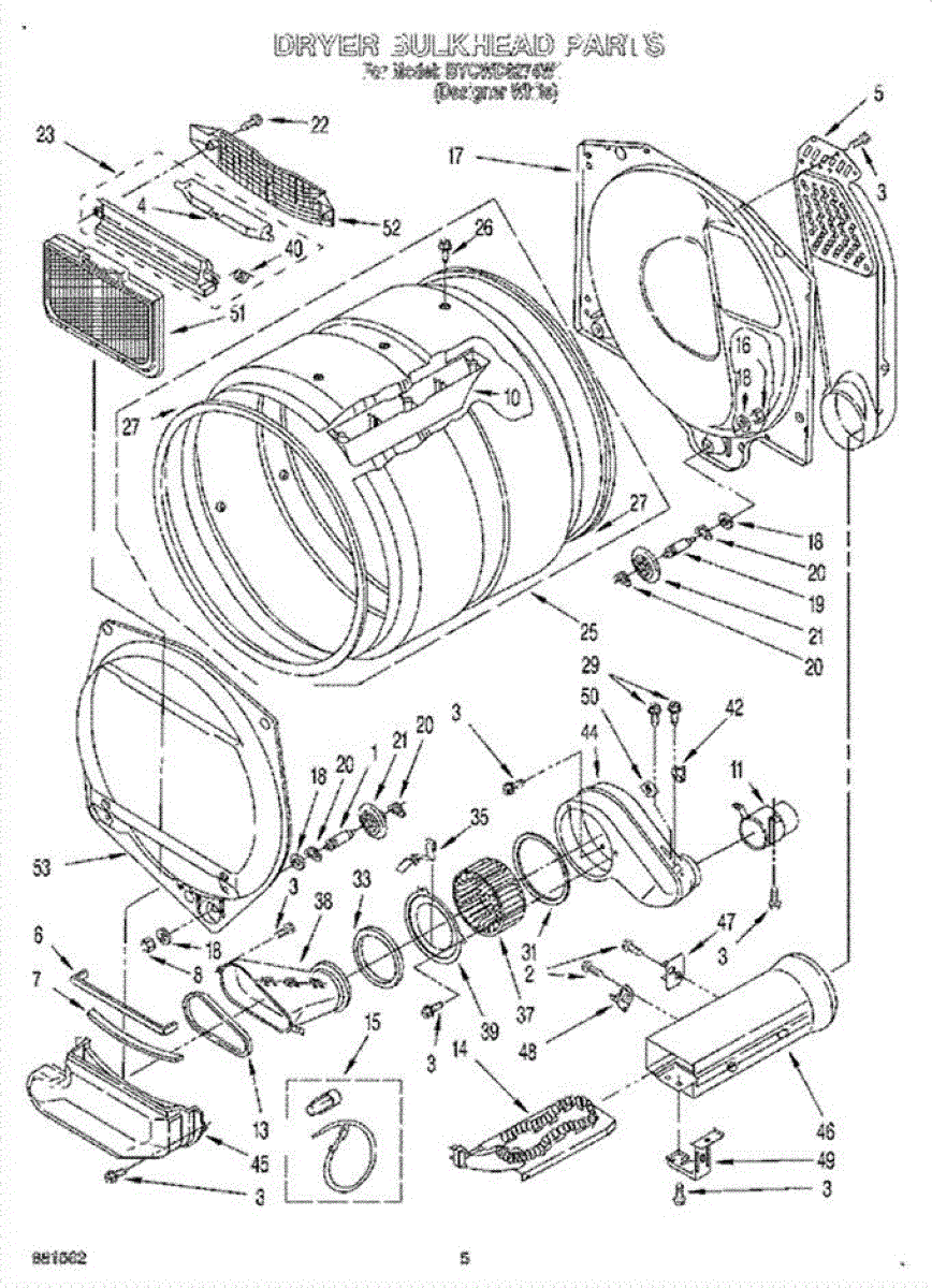 This front drum bulkhead is the stationary front panel that supports the dryer drum and seals the drum opening to maintain proper airflow and drum alignment for reliable drying performance. What it does: