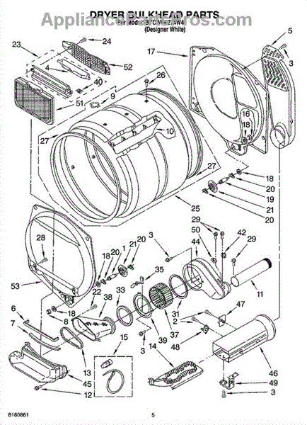 This front drum bulkhead is the stationary front panel that supports the dryer drum and seals the drum opening to maintain proper airflow and drum alignment for reliable drying performance. What it does:
