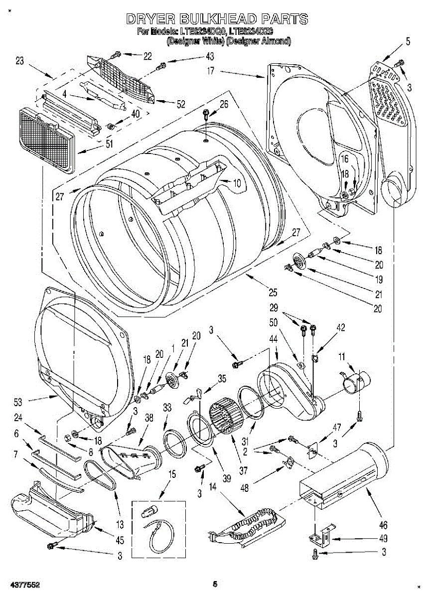 This front drum bulkhead is the stationary front panel that supports the dryer drum and seals the drum opening to maintain proper airflow and drum alignment for reliable drying performance. What it does: