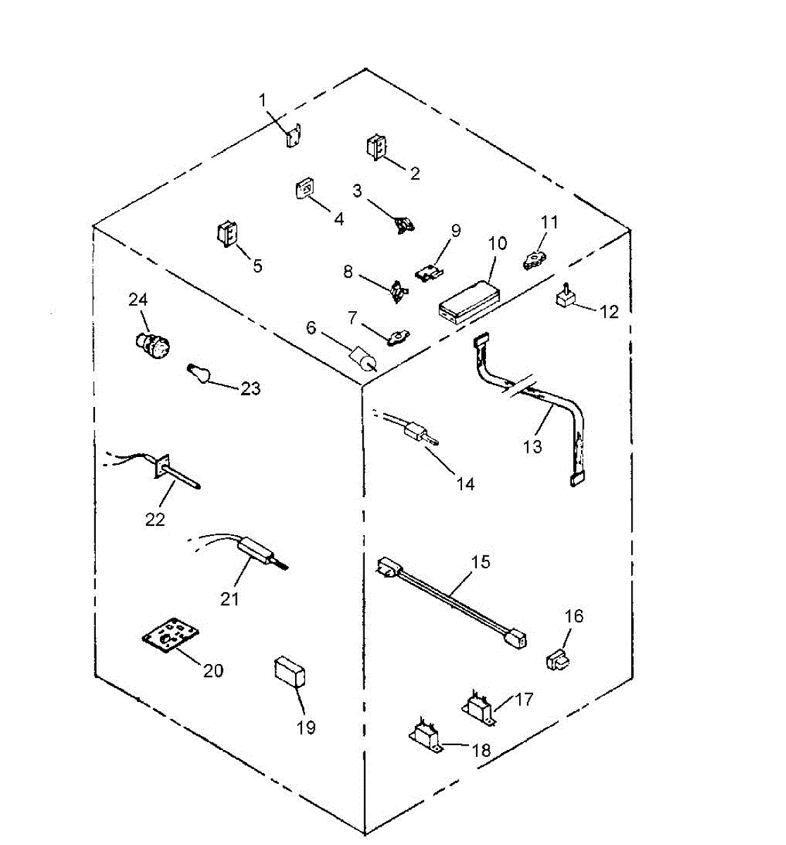 Illuminates oven interior for monitoring cooking without opening the door. Replace if light fails, socket cracks, or bulbs blow frequently. Verify fit.