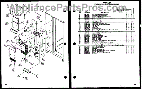 Parts for Amana 36571 / P1115505W: 04 - Evap And Air Handling Parts