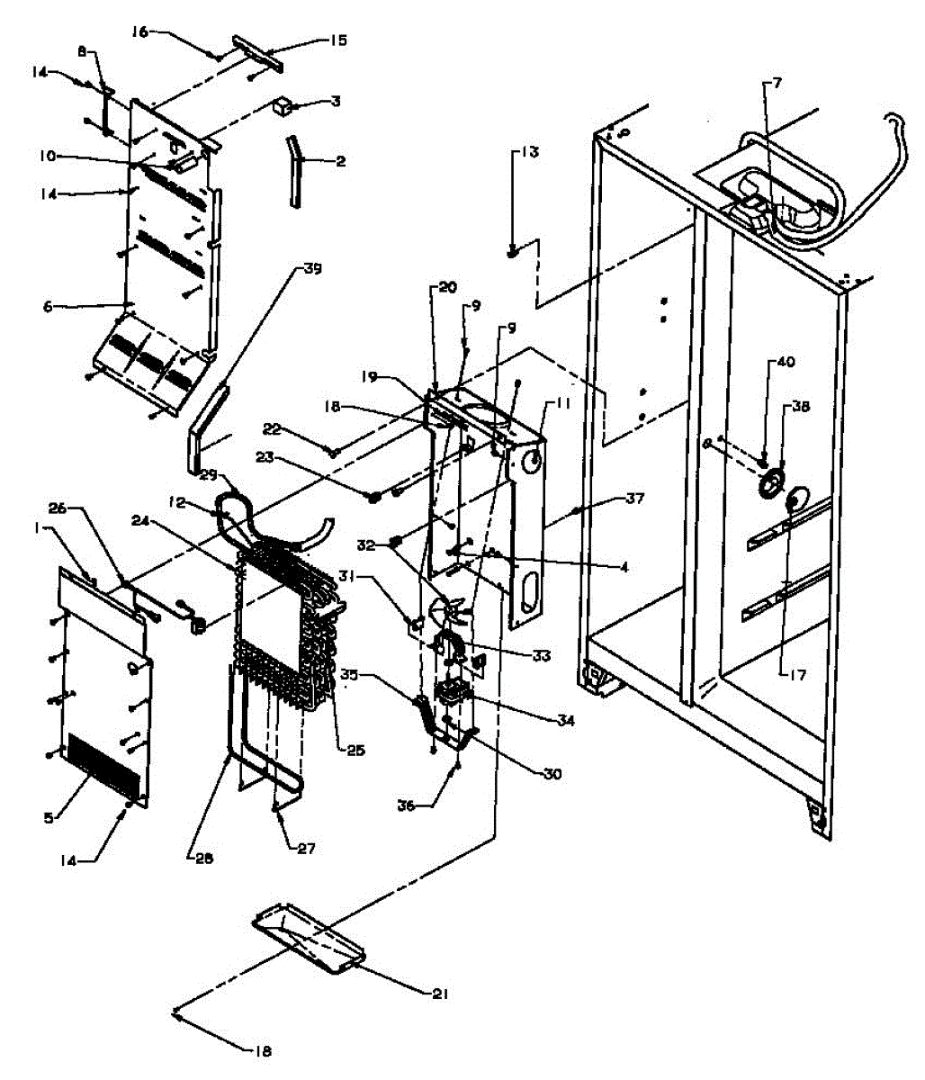 • Access is behind the freezer's rear evaporator cover; remove shelves/bins and the panel