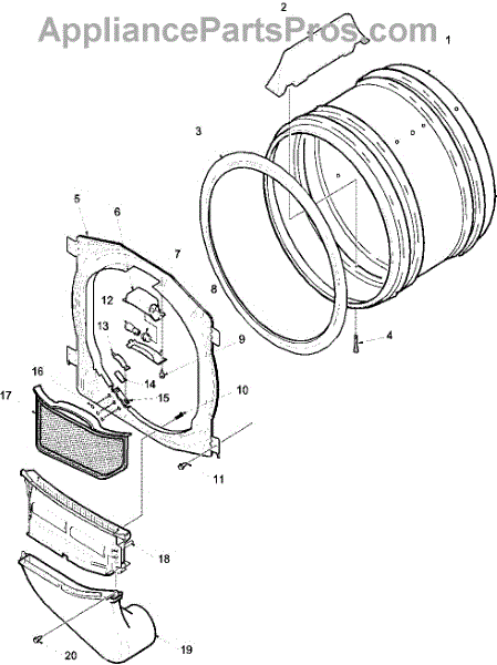 This upper and lower air duct assembly includes the lint screen.