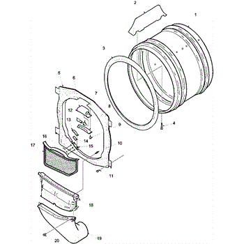 This upper and lower air duct assembly includes the lint screen.