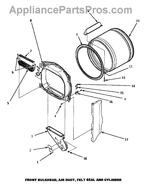 The Dryer Glide Felt Pad is an OEM part for Whirlpool dryers. It is located at the front of the dryer drum. It provides a smooth surface for the drum to glide on, reducing friction and allowing it to rotate freely. This helps to prevent excessive wear and noise during the drying cycle.