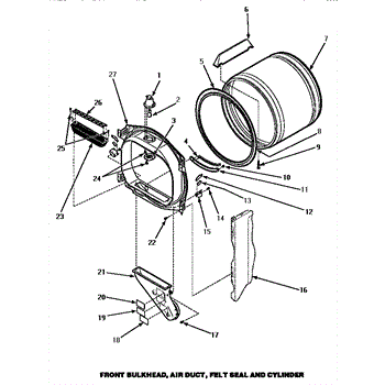 Parts for Amana LEM447W / P1176701W W: 04 - Fr Blkhd, Air Duct, Felt Seal & Cylinder Parts