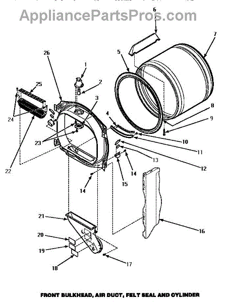 Parts for Amana LG4609W / P1163616W W: 04 - Fr Blkhd, Air Duct, Felt Seal & Cylinder Parts