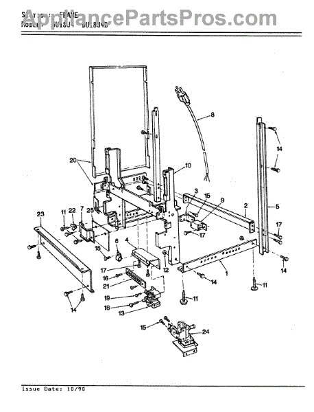 This factory screw secures appliance components to their mounting points. Replace missing, worn, or stripped hardware to restore a tight fit, proper alignment, and quieter operation across the affected assembly.