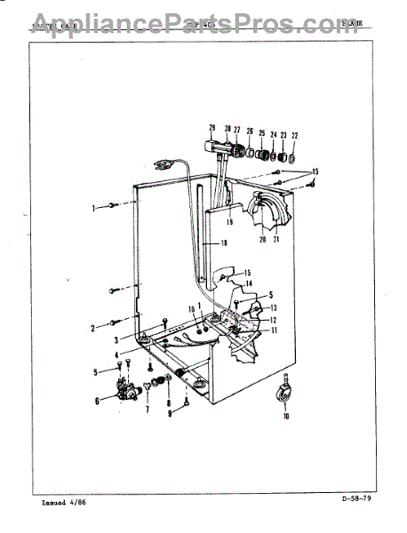 This factory screw secures appliance components to their mounting points. Replace missing, worn, or stripped hardware to restore a tight fit, proper alignment, and quieter operation across the affected assembly.