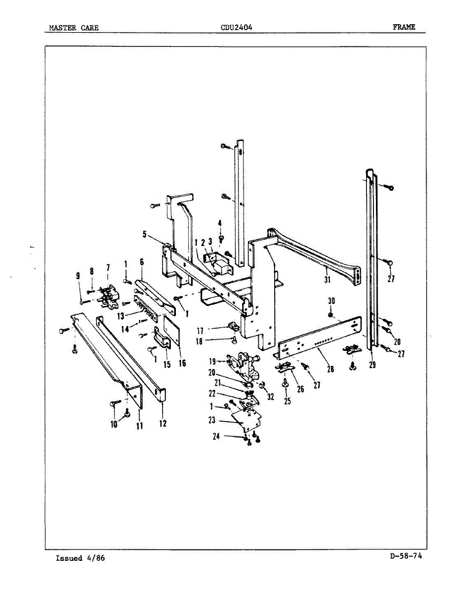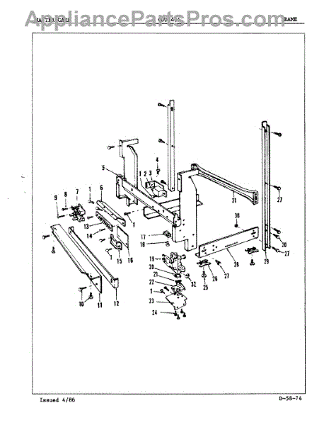 This factory screw secures appliance components to their mounting points. Replace missing, worn, or stripped hardware to restore a tight fit, proper alignment, and quieter operation across the affected assembly.
