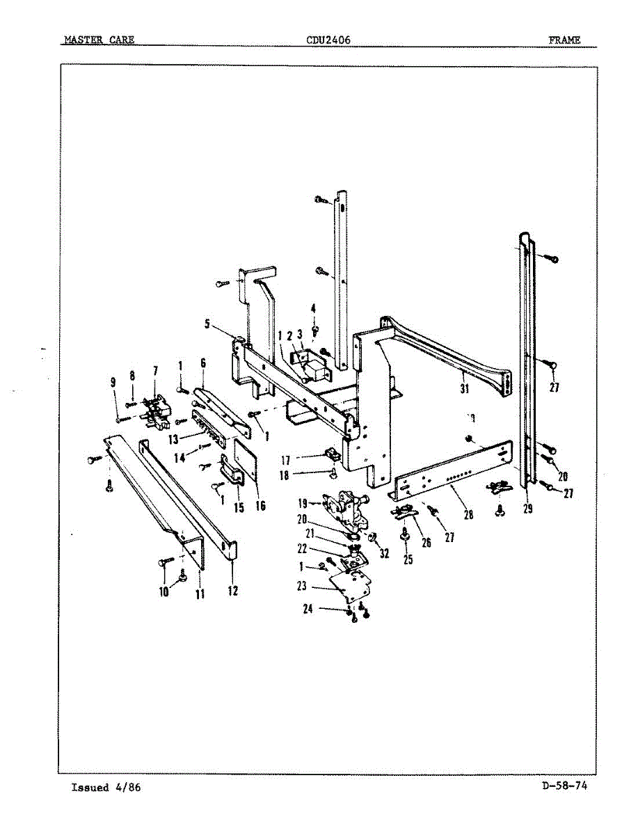 This factory screw secures appliance components to their mounting points. Replace missing, worn, or stripped hardware to restore a tight fit, proper alignment, and quieter operation across the affected assembly.
