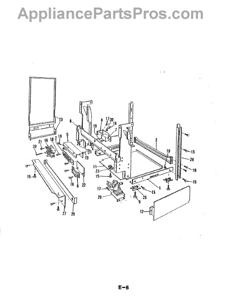 This factory screw secures appliance components to their mounting points. Replace missing, worn, or stripped hardware to restore a tight fit, proper alignment, and quieter operation across the affected assembly.