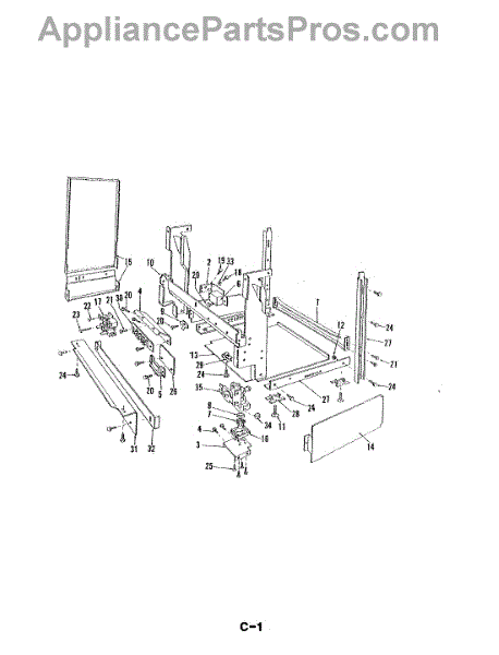 This factory screw secures appliance components to their mounting points. Replace missing, worn, or stripped hardware to restore a tight fit, proper alignment, and quieter operation across the affected assembly.