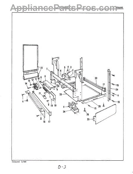 This factory screw secures appliance components to their mounting points. Replace missing, worn, or stripped hardware to restore a tight fit, proper alignment, and quieter operation across the affected assembly.