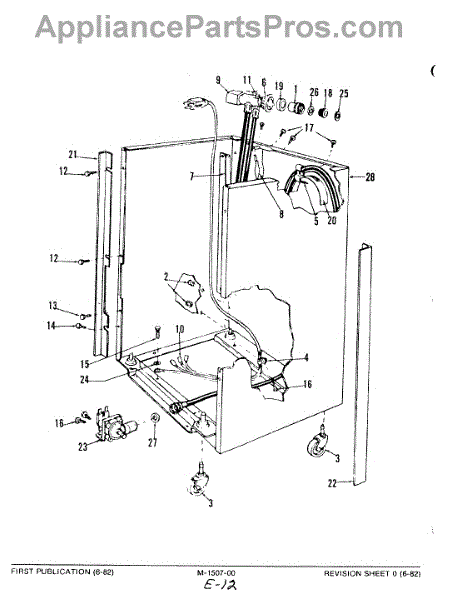 This factory screw secures appliance components to their mounting points. Replace missing, worn, or stripped hardware to restore a tight fit, proper alignment, and quieter operation across the affected assembly.