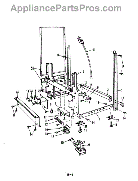This factory screw secures appliance components to their mounting points. Replace missing, worn, or stripped hardware to restore a tight fit, proper alignment, and quieter operation across the affected assembly.