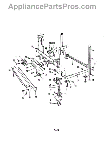 This factory screw secures appliance components to their mounting points. Replace missing, worn, or stripped hardware to restore a tight fit, proper alignment, and quieter operation across the affected assembly.