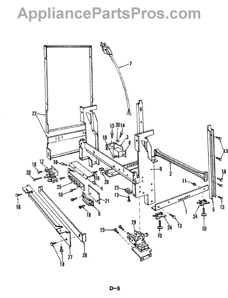 This factory screw secures appliance components to their mounting points. Replace missing, worn, or stripped hardware to restore a tight fit, proper alignment, and quieter operation across the affected assembly.