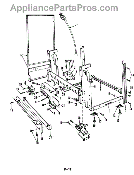This factory screw secures appliance components to their mounting points. Replace missing, worn, or stripped hardware to restore a tight fit, proper alignment, and quieter operation across the affected assembly.