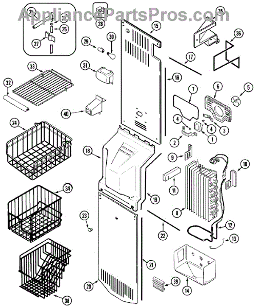 This assembly contains the evaporator defrost heater and temperature thermostat that remove frost from the evaporator coil to help restore normal cooling. Replaces failed defrost components to help the fridge complete defrost cycles and reduce ice buildup. What it does: