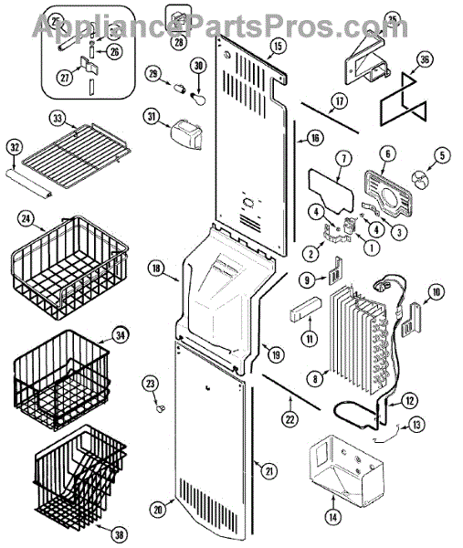 This assembly contains the evaporator defrost heater and temperature thermostat that remove frost from the evaporator coil to help restore normal cooling. Replaces failed defrost components to help the fridge complete defrost cycles and reduce ice buildup. What it does:
