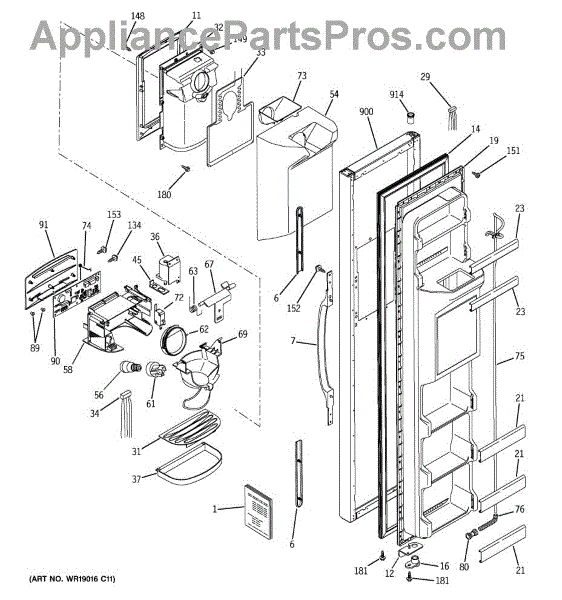 The Door Handle is an OEM part for GE refrigerators. This part provides a secure and comfortable grip for opening and closing the refrigerator door.