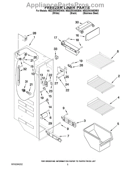 Parts for Maytag MSD2553WEM00: 04 - Freezer Liner Parts
