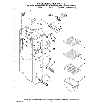 Parts for Maytag MSD2658KGW00: 04 - Freezer Liner Parts