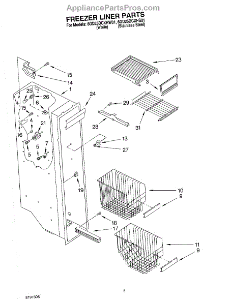 Parts for Whirlpool 6GD25DCXHW01: 04 - Freezer Liner Parts