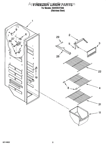 Parts for Whirlpool ID2HHEXTS00: 04 - Freezer Liner Parts