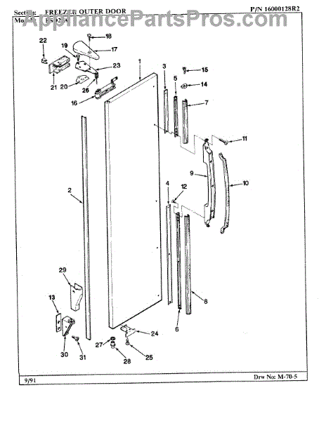 Parts for Maytag RSD20A / BM05B: 04 - Freezer Outer Door Parts