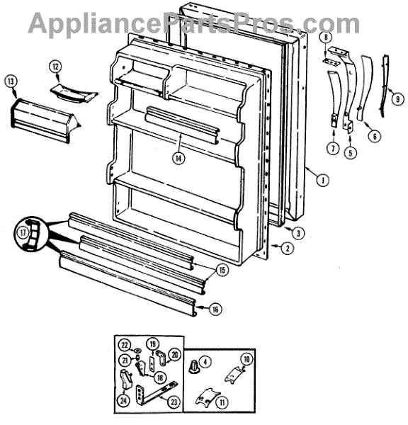 Parts for Admiral AT17M6A / DA27A: 04 - Fresh Food Door Parts
