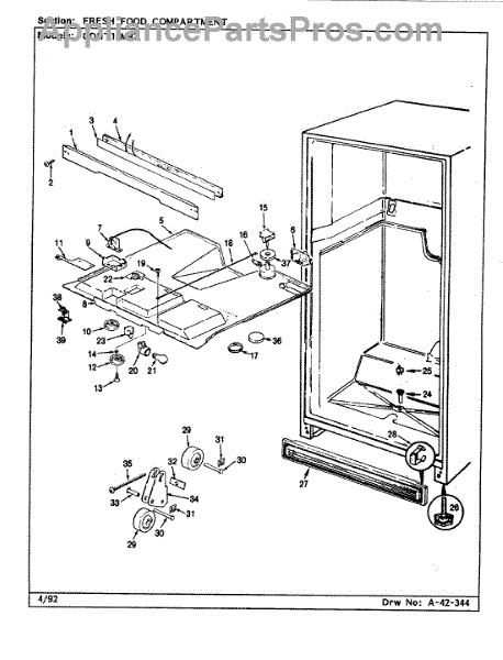 This factory screw secures appliance components to their mounting points. Replace missing, worn, or stripped hardware to restore a tight fit, proper alignment, and quieter operation across the affected assembly.